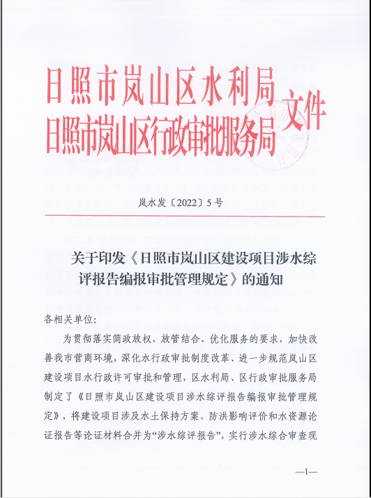 二是推行“三合一”涉水綜評報告。為優(yōu)化營商環(huán)境,嵐山區(qū)水利局會同嵐山區(qū)審批局聯(lián)合印發(fā)《日照市嵐山區(qū)建設(shè)項目水影響評價編制指南(試行)》和《日照市嵐山區(qū)建設(shè)項目水影響評價報告編報審批管理規(guī)定》,在全市創(chuàng)新性的將涉水相關(guān)的水土保持、水資源論證、防洪影響評價“三合一”改革成“涉水綜評報告”,實行“三合一”審批后,將原有的三個評審環(huán)節(jié)合并為一個評審環(huán)節(jié),一個項目在涉水審批上不再多次評審,將節(jié)省三分之二審批時間,既為企業(yè)減少時間成本,又為企業(yè)減少制度成本,從根本上達到為企業(yè)減負的效果。